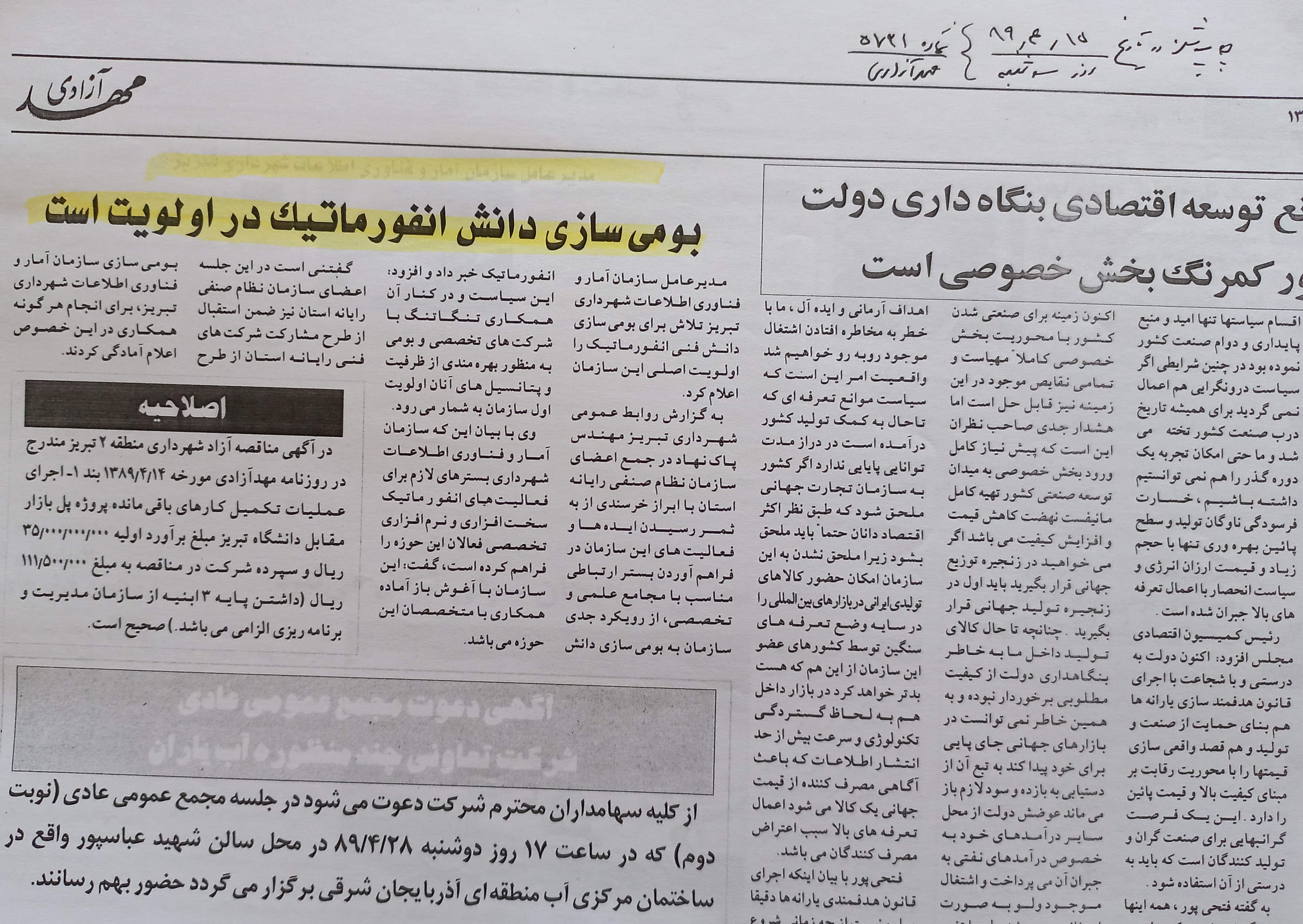 خبرگزاری شهریار به نقل از روابط عمومی شهرداری تبریز گزارش داد، مهندس پاک نهاد در جمع اعضای سازمان نظام صنفی رایانه استان با ابرزا خرسندی از به ثمر رسیدن ایده ها و فعالیت های این سازمان در فراهم آوردن بستر ارتباطی مناسب با مجامع علمی و تخصصی ، از رویکرد جدی سازمان به بومی سازی دانش انفورماتیک خبرداد و افزود: این سیاست و در کنار آن همکاری تنگاتنگ با شرکت های تخصصی و بومی به منظور بهره مندی از ظرفیت و پتانسیل های آنان اولویت اول سازمان به شمار می رود.
