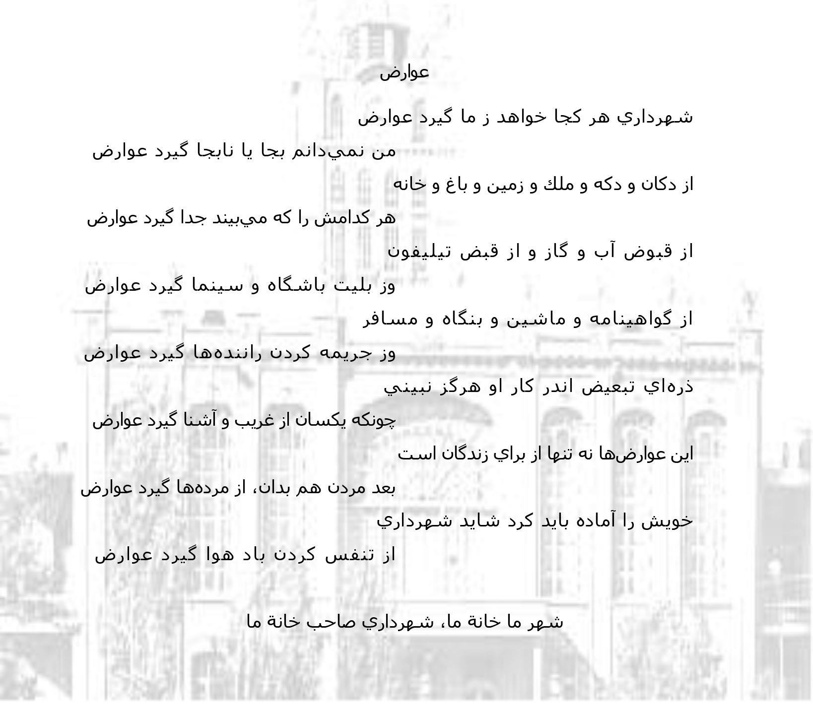 شعری در باب به جان آمدن مردم از دست عوارض های شهرداری ها