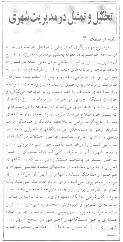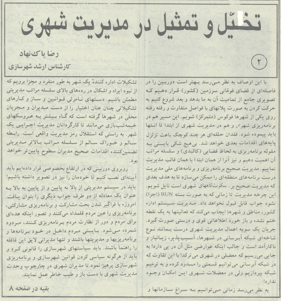 این مقاله بر مبنای زاویه دید مدیران نسبت به مقوله شهر نگاشته شده است.