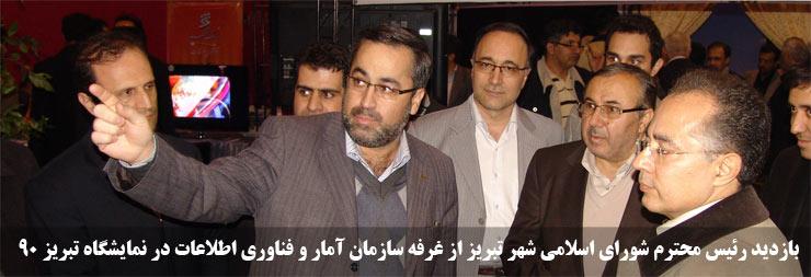 بنا بر گزارش روابط عمومی سازمان آمار و فناوری اطلاعات، در پی برگزاری نمایشگاه چشم انداز توسعه تبریز 90 ، دکتر دبیری رییس شورای اسلامی شهر تبریز و مهندس نوین شهردار کلانشهر تبریز ضمن بازدید از غرفه سازمان آمار فناوری اطلاعات، در جریان فعالیت ها و پروژه های مهم این سازمان قرار گرفتند.